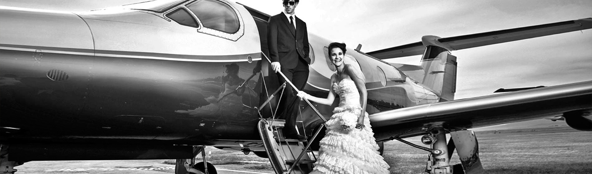 Would you like to celebrate your own wedding with a very special experience? We will gladly take care of all your concerns and wishes. After a wedding ceremony in a private plane you will take off for a sightseeing flight over your home country or start directly for your honeymoon to your desired destination in Europe.